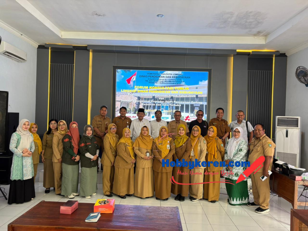 Kegiatan ini membahas Evaluasi Standar Pelayanan Publik Tahun 2026 serta Standar Operasional Prosedur (SOP) Penyewaan Gedung Gedung Kesenian dan Aula Terbuka. Beryempat di Aula 2 Dinas Pendidikan dan Kebudayaan Kabupaten Jombang. Senin (12/1/2026)