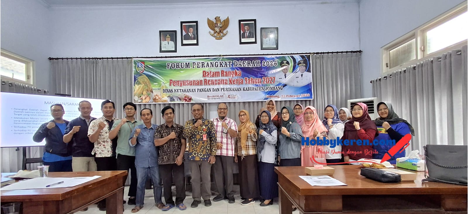 Jombang,hobbykeren.com – Dinas Ketahanan Pangan dan Perikanan (DKPP) Kabupaten Jombang gelar Forum Perangkat Daerah 2026 dalam rangka Penyusunan Rencana Kerja Tahun 2027, dibuka oleh Kepala DKPP kabupaten Jombamg, Bambang Sriadi. Dihadiri perwakilan Bappeda, BPKAD, DLH, Dinas Pertanian, Dinas Peternakan, Inspektorat, Poklahskar dan Lumbung. Bertempat di Gedung pertemuan kantor DKPP Jombang. Jum’at (13/2/2026).