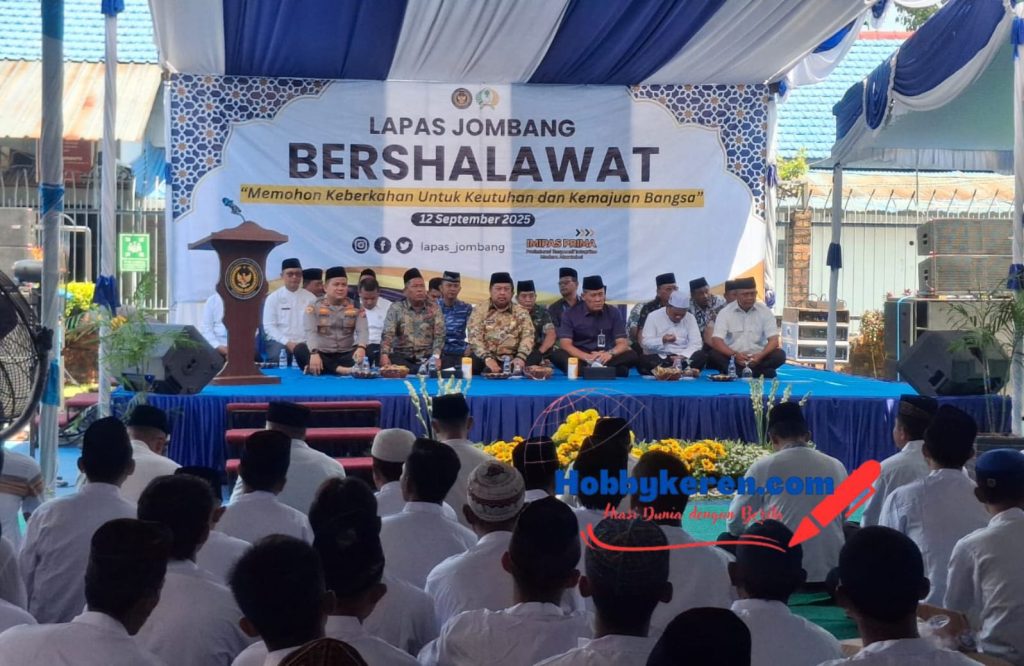 Jombang,hobbykeren.com – Dalam rangka memperingati Maulid Nabi Muhammad SAW 1447 Hijriah, Lapas IIB Jombang gelar sholawatan serta meresmikan Pondok Pesantren Al-Muhajirin. Ditandai dengan penandatanganan prasasti oleh Kakanwil Ditjenpas Jatim Kadiyono serta Bupati Jombang Warsubi.