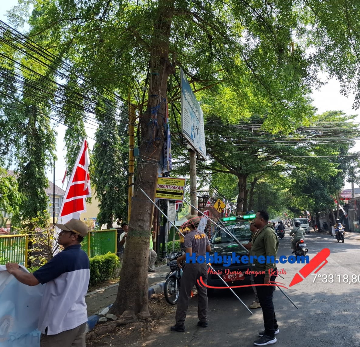 Jombang,hobbykeren.com – Kepala Satuan Polisi Pamong Praja (Kasatpol PP) Kabupaten Jombang pimpin langsung penertiban pemasangan reklame yang tidak sesuai ketentuan di depan SMK Negeri 3, tepatnya di Jalan Patimura, Sengon, Jombang. Senin (4/8/2025).